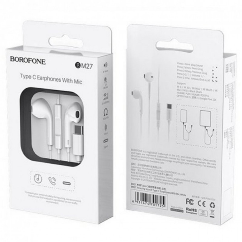 Навушники з мікрофоном Borofone BM27 Amazing Sound, Type C, білі