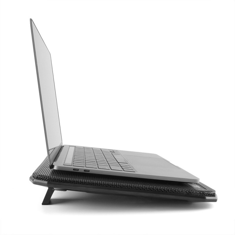 Охолоджувальна підставка ефективно вирішує проблему перегріву ноутбука, що допомагає продовжити його термін служби і підвищити продуктивність. Працюючи в комфортній позі з установленим пристроєм, користувачі можуть уникнути болів у шиї та спині, зробивши роботу більш продуктивною та менш втомлюючою.