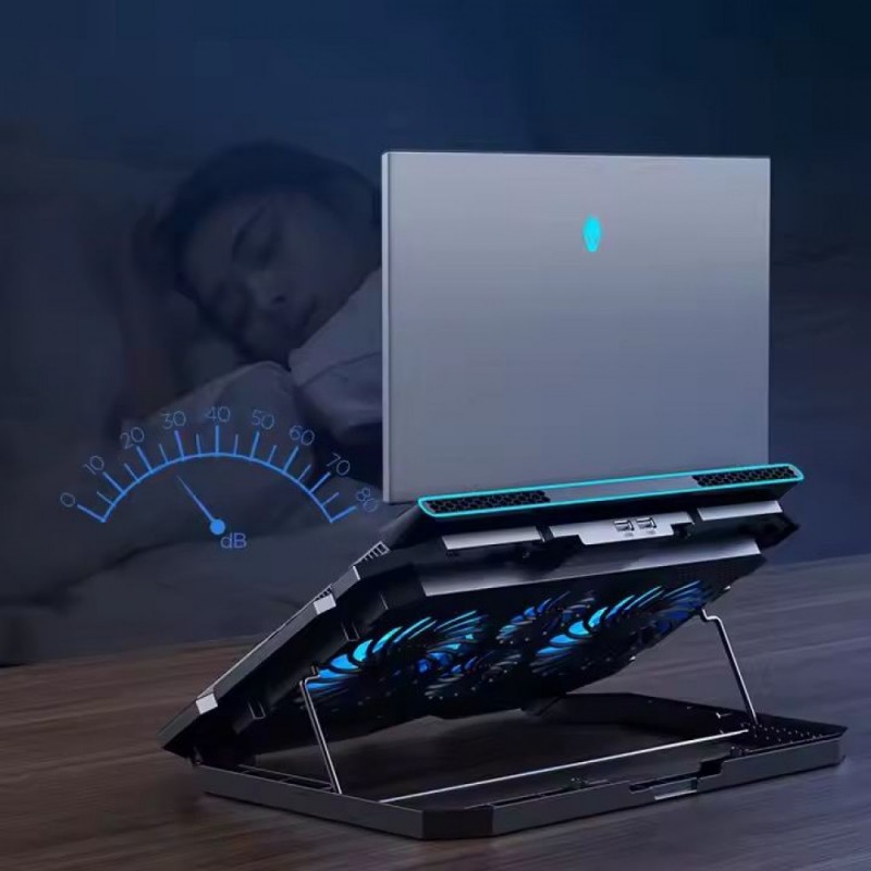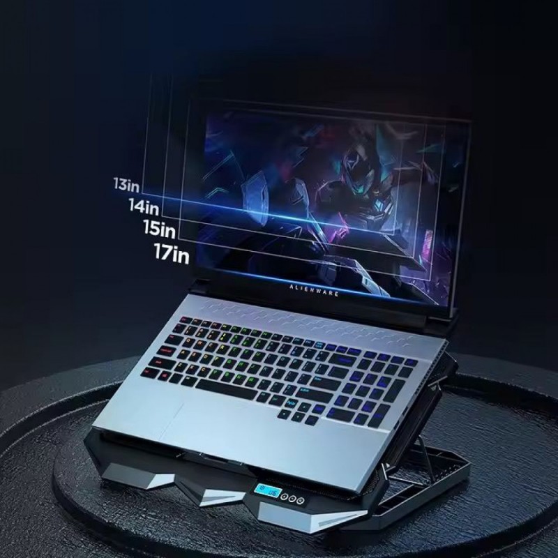 Ця охолоджуюча підставка для ноутбука оснащена чотирма вентиляторами і призначена для ефективного охолодження вашого пристрою. Підходить для ноутбуків розміром до 17 дюймів, забезпечуючи оптимальну температуру для роботи вашого пристрою.