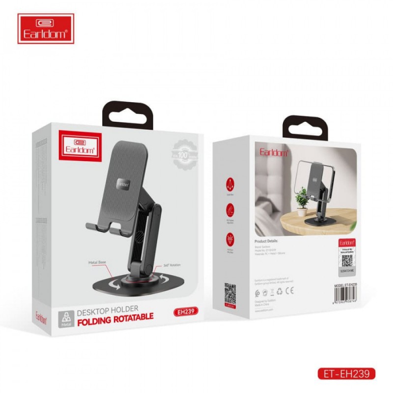 Підставка для телефону Earldom ET-EH239 - це складаний і універсальний пристрій, призначений для зручного позиціонування вашого смартфона. Завдяки вбудованій функції регулювання кута нахилу, ви зможете знаходити ідеальне положення для комфортного перегляду відео, читання або участі у відеодзвінках. Ця підставка відмінно підходить для використання вдома, в офісі або навіть у поїздках.