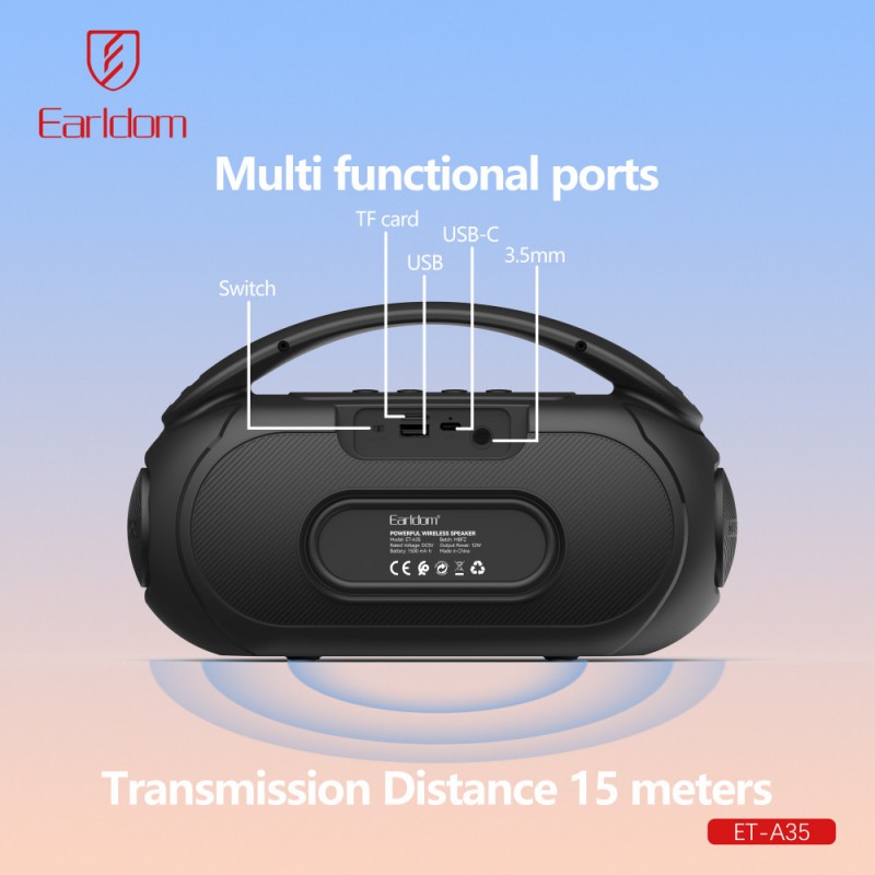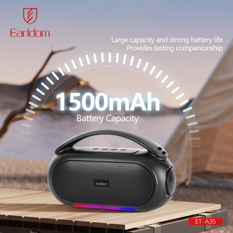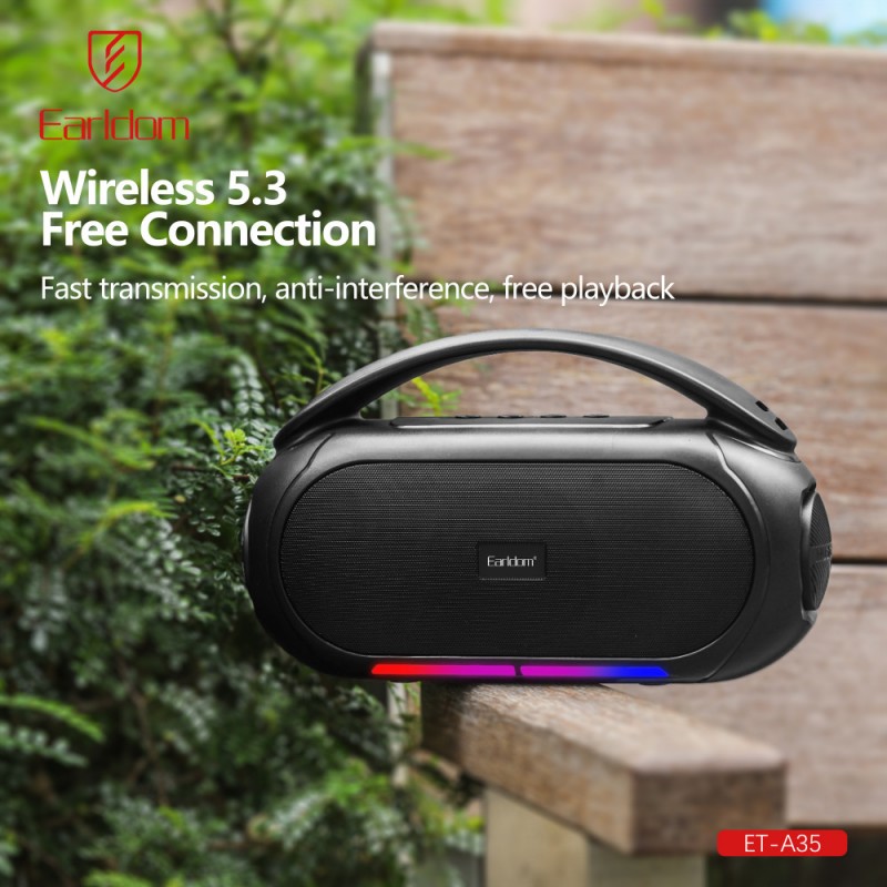 Портативна колонка Earldom ET-A35 — це компактний пристрій, який забезпечує якісне звучання та зручність використання завдяки сучасним технологіям Bluetooth 5.3 і RGB-підсвітці. Вона стане ідеальним супутником для любителів музики в будь-якому місці.