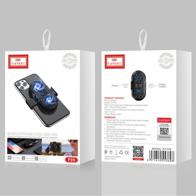 Портативний міні вентилятор Earldom ET-F05 — це компактне та ефективне рішення для охолодження вашого мобільного пристрою. Виготовлений із ABS та алюмінію, він легкий і зручний у використанні.
