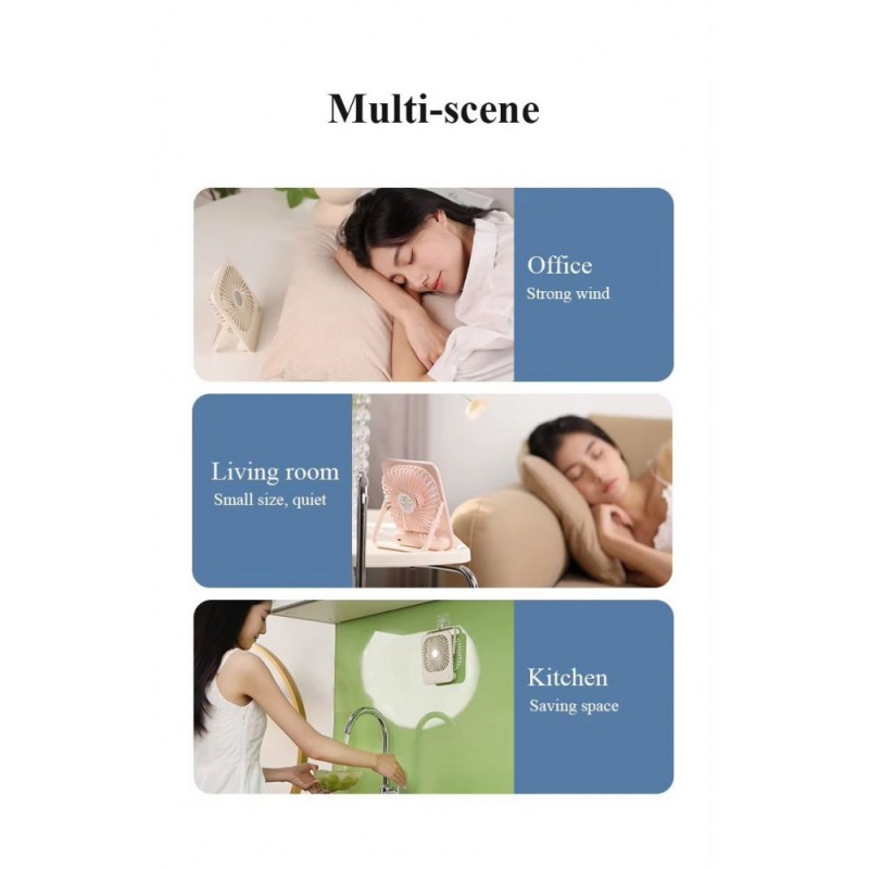 Вентилятор ідеально підходить для використання на вулиці, в офісах, під час подорожей або в будь-яких місцях без кондиціонера. Його компактний дизайн дозволяє носити його з собою скрізь.