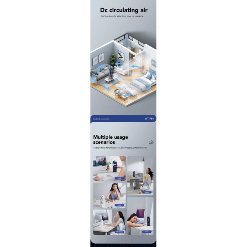 Портативний міні вентилятор WT-F84 - ваш надійний супутник у спекотні дні. Він забезпечує прохолоду в будь-якому місці: вдома, в офісі чи на вулиці. Компактні розміри дозволяють легко носити його у сумці чи рюкзаку. Потужний мотор швидко та ефективно створює освіжаючий потік повітря. Пристрій працює від акумулятора, забезпечуючи тривале автономне використання. Елегантний дизайн та стильний колір роблять вентилятор приємним доповненням вашого інтер'єру. Просте управління завдяки інтуїтивно зрозумілій панелі кнопок.
