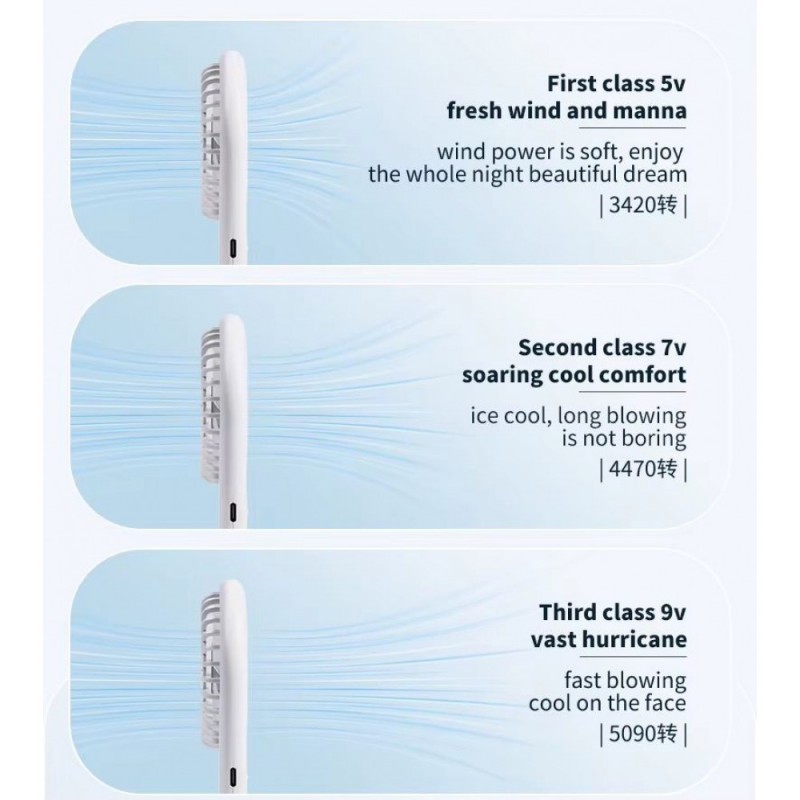 Заряджайте вентилятор через USB-порт до повної ємності. Увімкніть пристрій та виберіть один з трьох режимів швидкості, натискаючи відповідну кнопку. Використовуйте вентилятор для персонального охолодження в будь-якому зручному для вас місці.