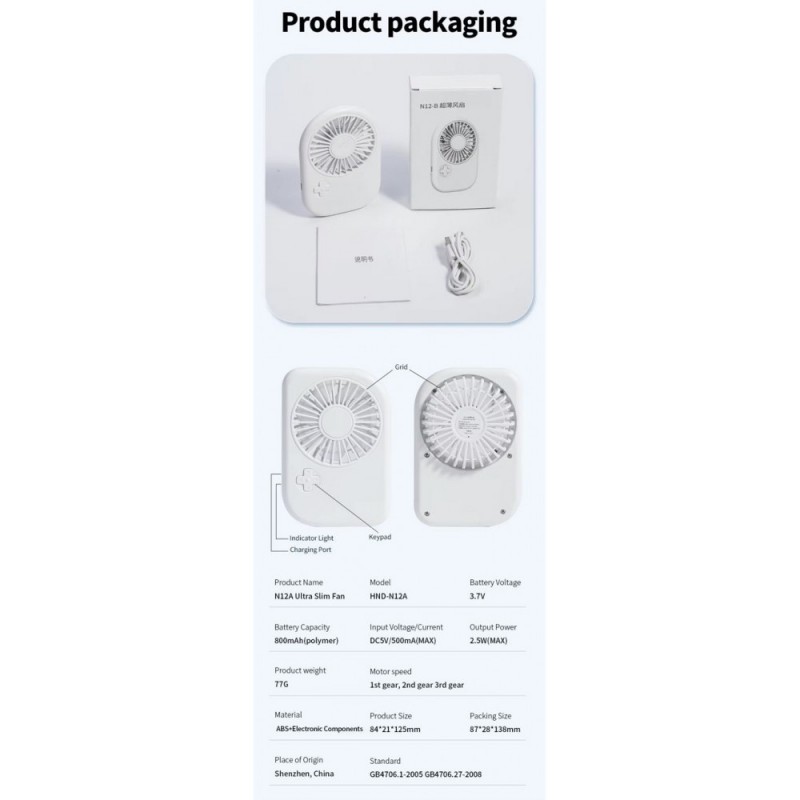 Портативний міні вентилятор N12-A — це чудовий спосіб освіжитися в спекотний день. Цей компактний прилад ідеально підходить для використання як вдома, так і на вулиці, забезпечуючи приємний прохолодний потік повітря в будь-який час. Компактність і легкість дозволяють легко носити його з собою, а три режими швидкості та зручна USB зарядка роблять його незамінним помічником. Тиха робота дозволяє використовувати вентилятор навіть у тихих місцях, не порушуючи спокій оточуючих. Стильний білий дизайн стане естетичним доповненням вашого простору.