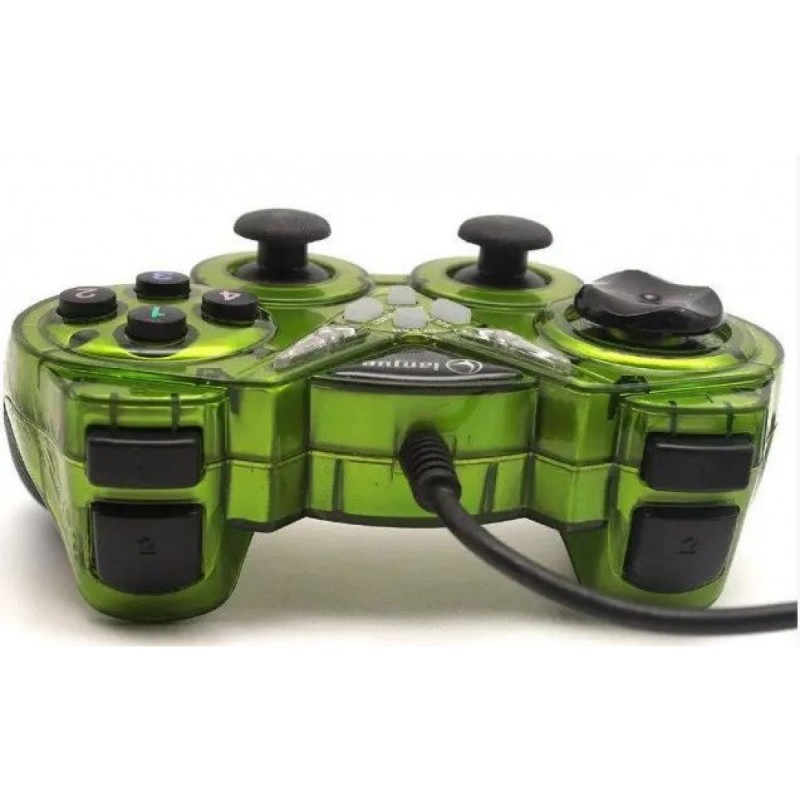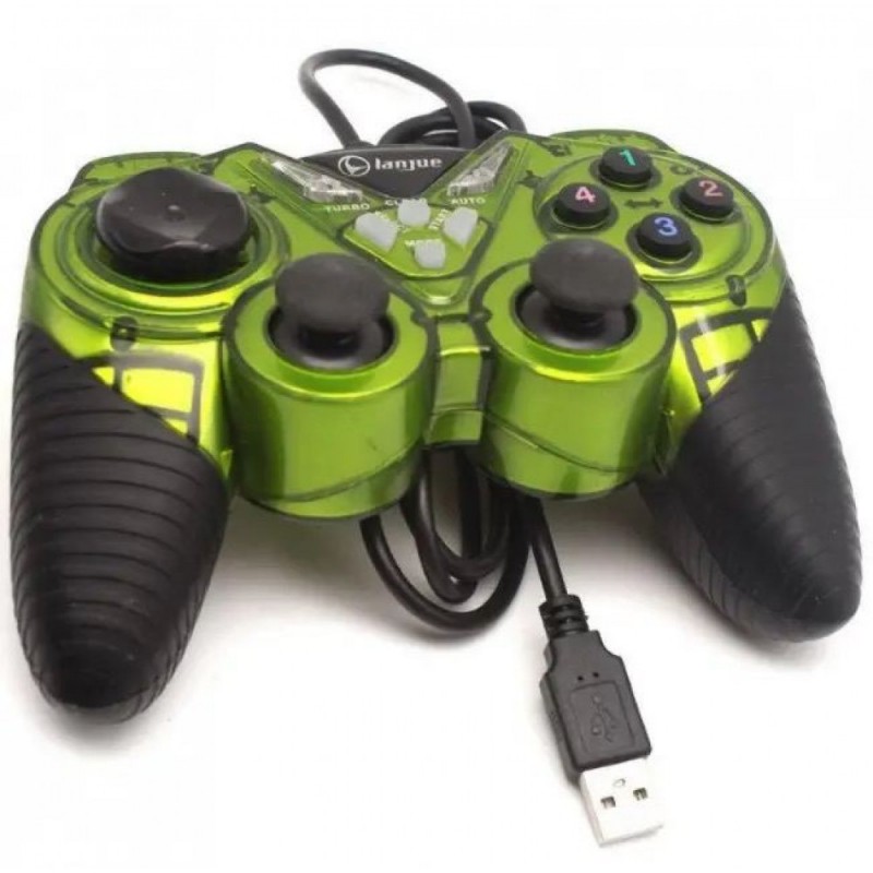 Провідний джойстик LANJUE L2000 оснащений USB-інтерфейсом і сумісний з широким спектром операційних систем Windows. Він має 10 програмованих кнопок і два спеціальні мотори для передачі вібрацій, що робить його ідеальним для захопливих файтингів.