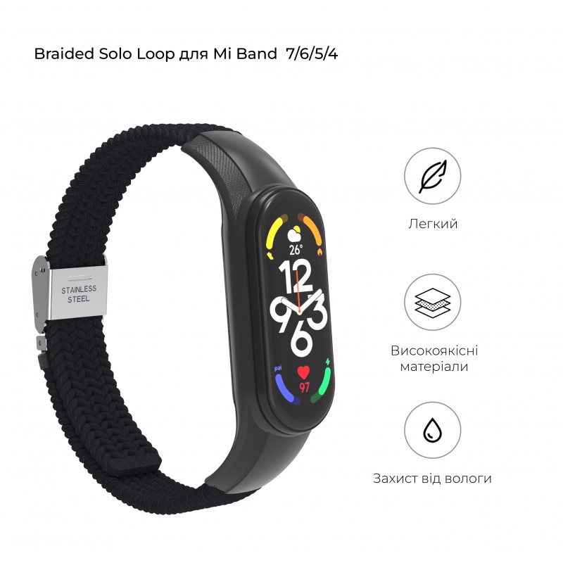Ремінець ArmorStandart Braided Solo Loop у чорному кольорі - це стильне та практичне доповнення для вашого фітнес-трекера Xiaomi Mi Band. Він виготовлений з якісних матеріалів, що забезпечують комфорт і довговічність.