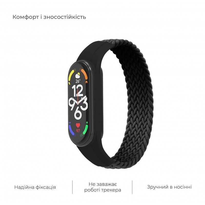 Ремінець ArmorStandart Braided Solo Loop для Xiaomi Mi Band 7/6/5/4 Black size L