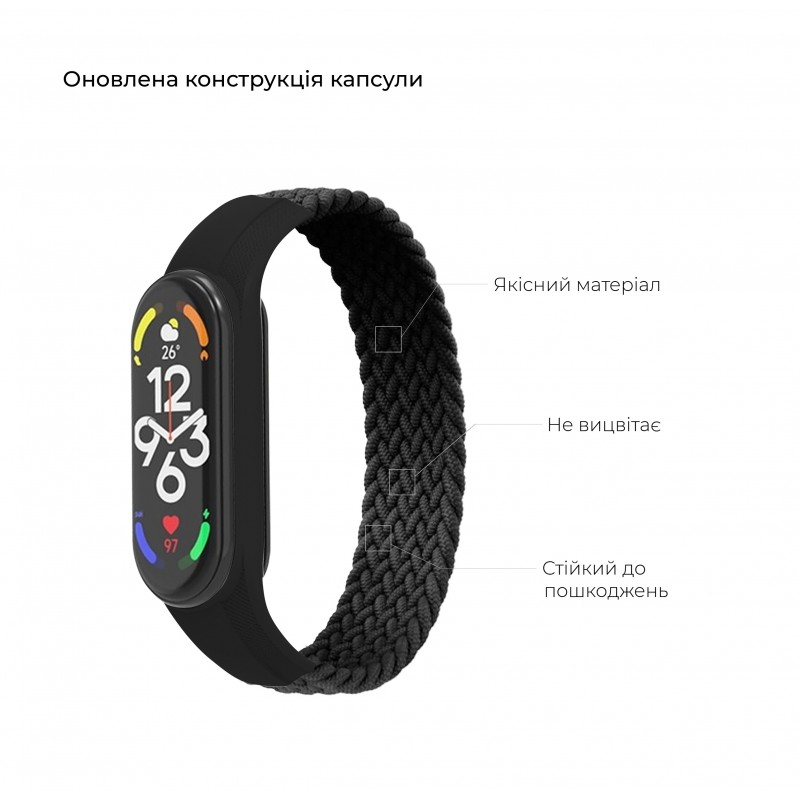 Ремінець ArmorStandart Braided Solo Loop для Xiaomi Mi Band 7/6/5/4 Black size S