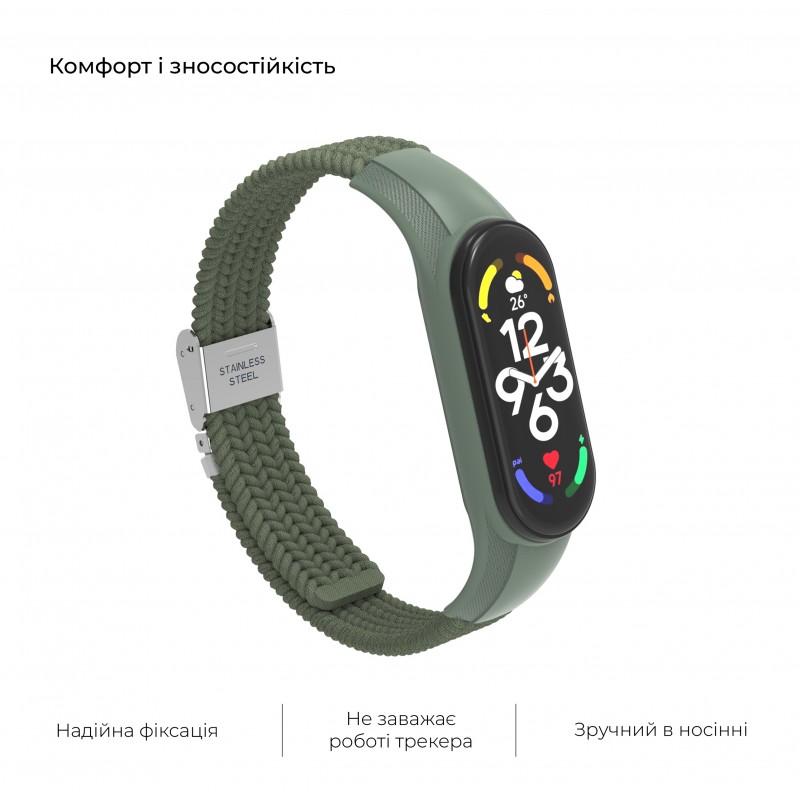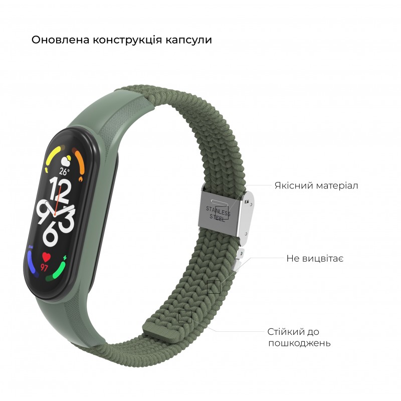 Цей стильний і зручний ремінець створений спеціально для власників фітнес-браслетів Xiaomi Mi Band 7, 6, 5 і 4. Виготовлений з високоякісного плетеного матеріалу, він забезпечує комфортне носіння та надійну фіксацію на зап'ясті.