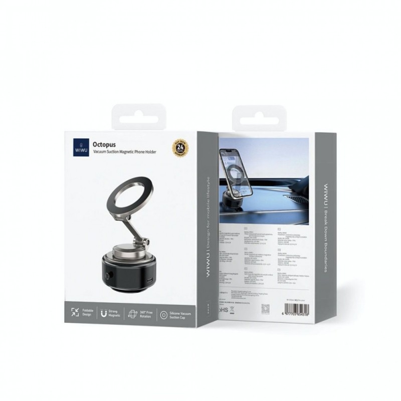 Автомобильный держатель WiWU CH056 — это магнитный аксессуар, который крепится на присоске, обеспечивая надежную фиксацию вашего устройства в автомобиле. Компактный и стильный дизайн позволяет удобно разместить смартфон для навигации и звонков без помощи рук.