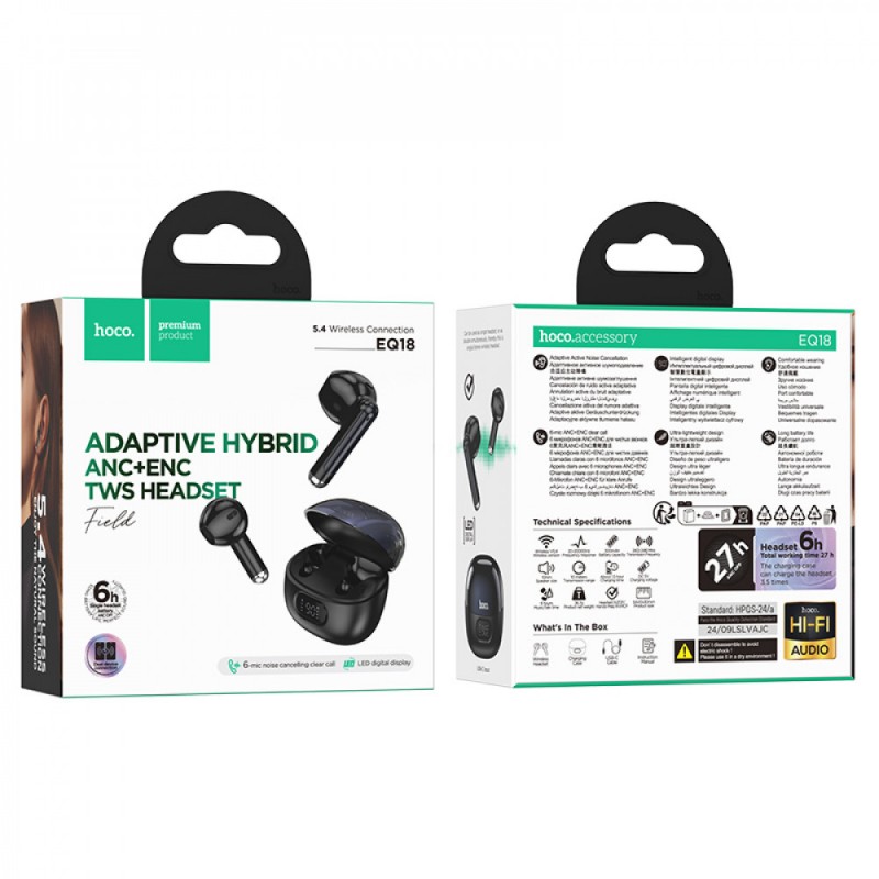 Bluetooth гарнитура Hoco EQ18 TWS — это стильное и удобное беспроводное устройство, обеспечивающее высокое качество звука и комфорт при использовании. Модель представлена в элегантном черном цвете и предоставляет возможность быстрой зарядки, что делает ее идеальным аксессуаром для активных пользователей. Защита от влаги гарантирует долговечность и надежность устройства в различных условиях.