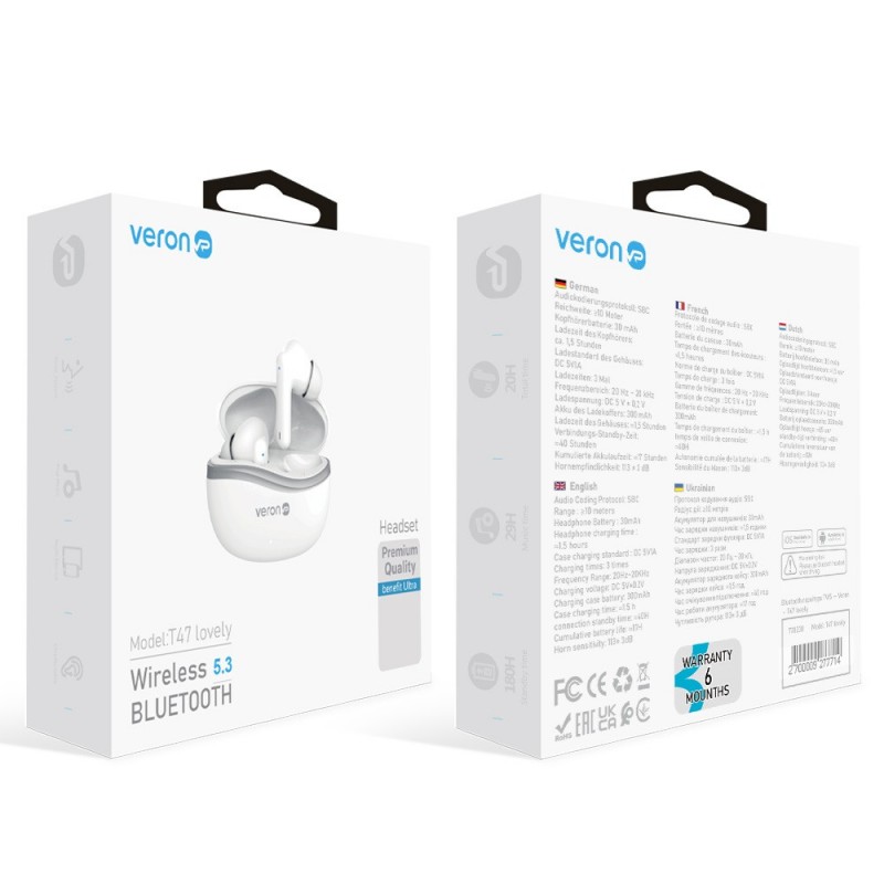 Veron T47 обеспечивают свободу от проводов, высокое качество звука и удобство, позволяя пользователю легко управлять музыкой и звонками. Избавляют от неудобства разматывания проводов и обеспечивают надежное соединение с устройствами.