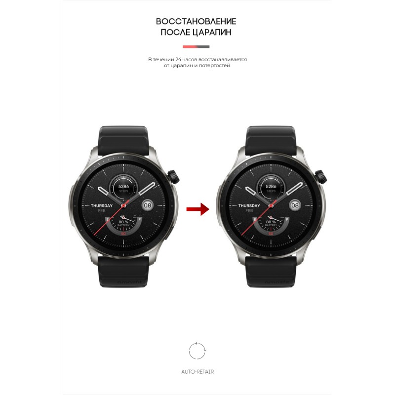 Эта пленка применяется для защиты экрана умных часов Amazfit GTR 4, обеспечивая их долговечность и эстетичный внешний вид.