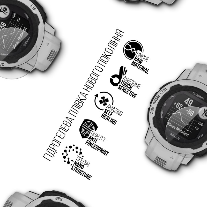 Эта пленка применяется на экранах умных часов Garmin Instinct 2S, обеспечивая их долговечность и сохранение внешнего вида.