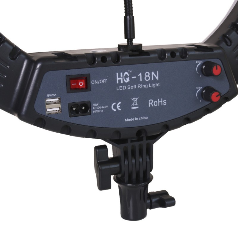 Кольцевая светодиодная лампа HQ-18 диаметром 45 см - это профессиональный инструмент с высоким индексом цветопередачи и высокой мощностью. Профессиональную осветительную лампу Вы можете использовать в качестве источника идеального освещения для селфи, макияжа, видео трансляций, съемок в помещении или на улице. Уникальное отличие люксовой LED лампы HQ-18 от аналогичных состоит в том, что она имеет 1 держатель для телефонов или других устройств. Попробуйте - и Вы уже не сможете отказаться от этого профессионального помощника в Вашей работе. Кольцевая люминесцентная лампа HQ-18 - портативный источник яркого света для фотографов, TikTok, видеографов, косметологов, визажистов, стилистов и моделей.