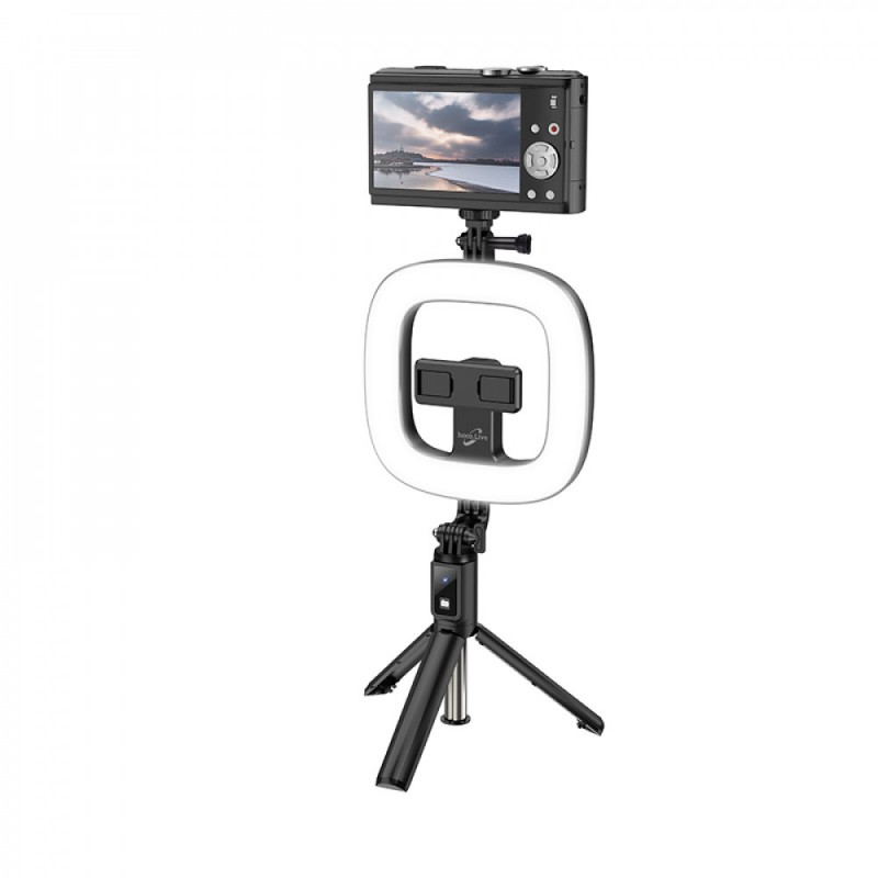Монопод-трипод Hoco Plus black - это удобный и надежный аксессуар высотой 0.80м, неотъемлемый для любителей фото и видеосъемки. Отличается своим компактным размером, прочностью и легкостью конструкции. Благодаря триноге, устройству можно добиться максимальной стабильности при съемке. Темный, классический дизайн делает его стильным дополнением к любому оборудованию.