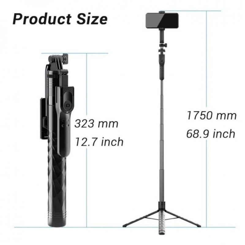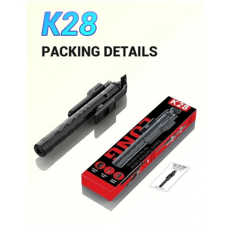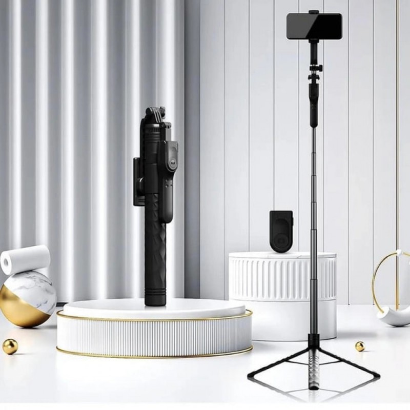 Монопод-трипод Wireless Tripod K28 Bluetooth Black - это универсальное устройство для селфи и видеосъемки, выполненное из качественных материалов. Благодаря алюминиевому корпусу он может выдерживать значительные нагрузки. Ручка, вращающаяся на 360 градусов, позволяет делать панорамные снимки, легко регулируя направление камеры.
