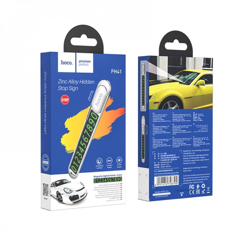 Парковочный номер Hoco PH41 — это удобное и стильное устройство, предназначенное для отображения вашего контактного номера телефона на лобовом стекле автомобиля. Изготовленный из высококачественных материалов, он обеспечивает долговечность и устойчивость к внешним воздействиям.