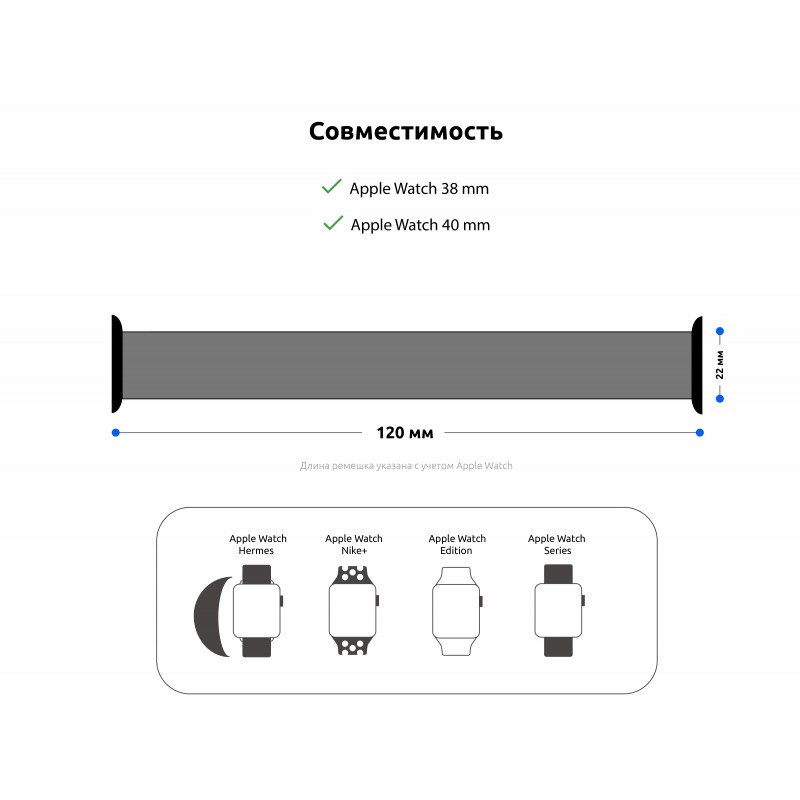 - Совместимость: Apple Watch 42/41/40/38 мм