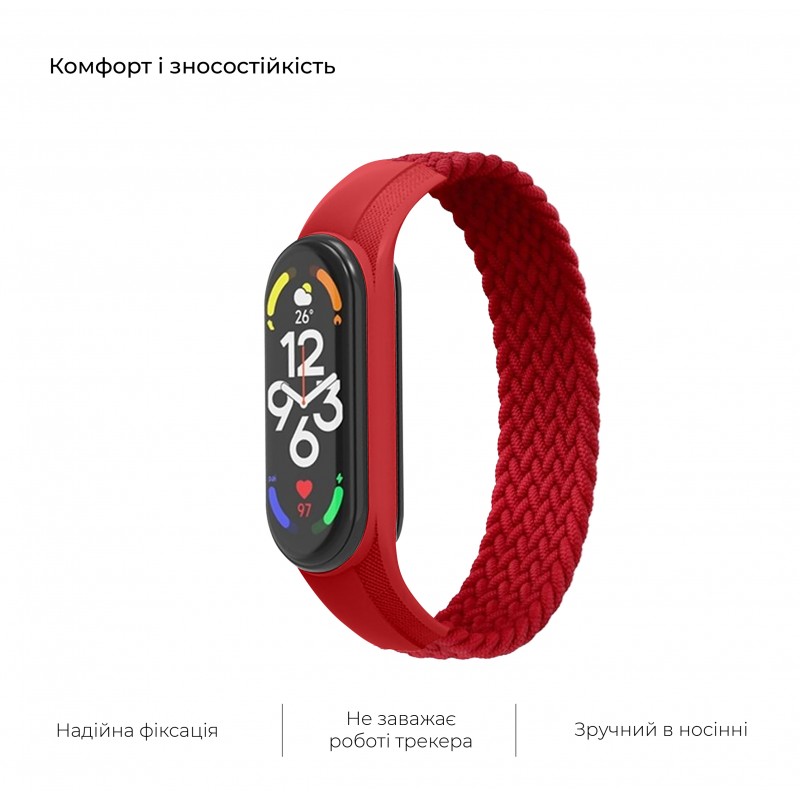 Ремешок ArmorStandart Braided Solo Loop для Xiaomi Mi Band 7/6/5/4, красный, размер S