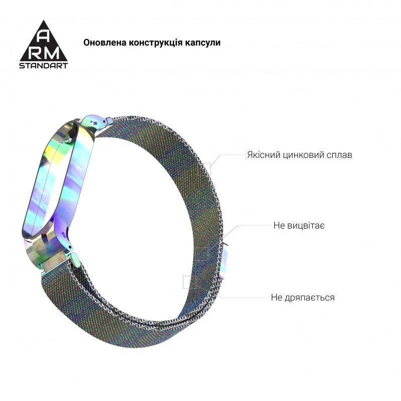 Ремешок ArmorStandart Milanese Magnetic Band в радужной расцветке — это яркое и стильное дополнение для вашего Xiaomi Mi Band 6 или 5. Он изготовлен из качественной нержавеющей стали и оснащен магнитной застежкой для удобного ношения.