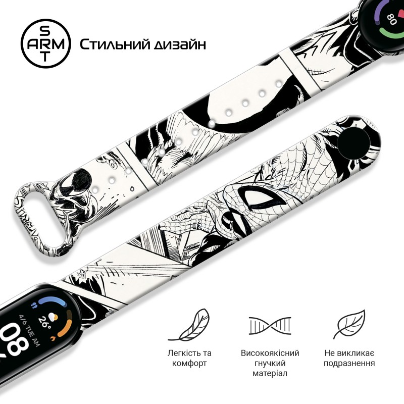 Ремешок ArmorStandart Superhero для Xiaomi Mi Band 7/6/5, Symbiosis comix White