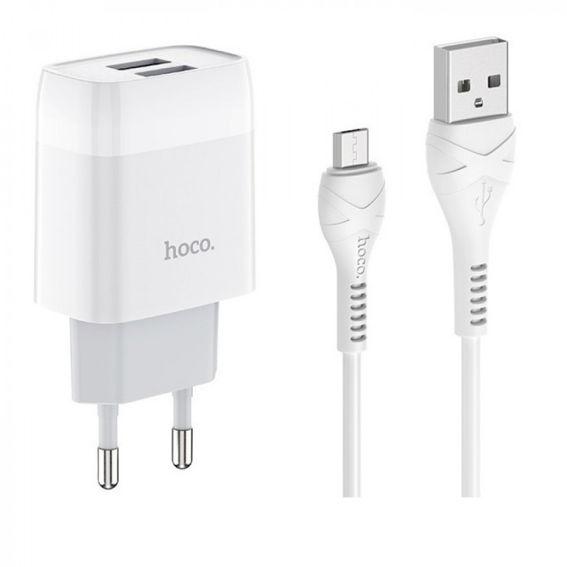 Зарядное устройство Home Charger 2.4A с USB-выходами и микро-кабелем (1м) Hoco C73A — Белое