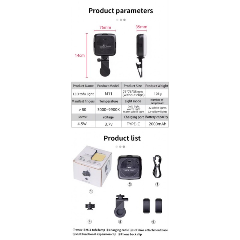 Селфі спалах M11 ідеально підходить для використання в умовах слабкого освітлення, таких як вечірки, вечірні прогулянки або просто для створення якісних портретів. Він чудово працює з мобільними телефонами, планшетами та камерами, забезпечуючи фантастичні результати без спотворень і тіней.