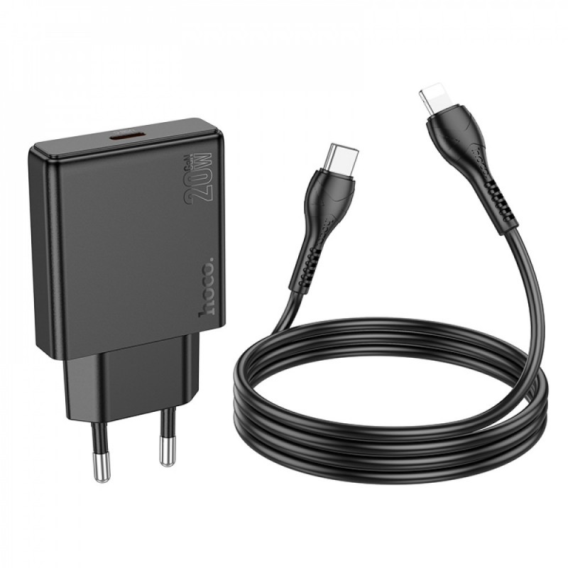 Мережевий зарядний пристрій 20W PD3.0 для iPhone Hoco N37 з кабелем C to Lightning
