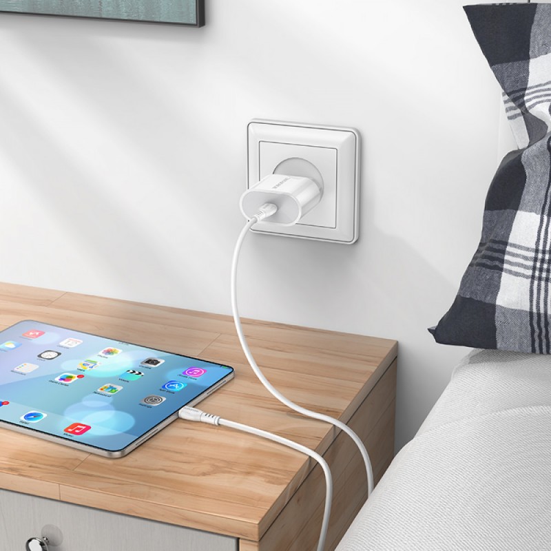 Мережевий зарядний пристрій 2.1A PD3.0 з кабелем Lightning (1м) Borofone BA61A — Білий для iPhone