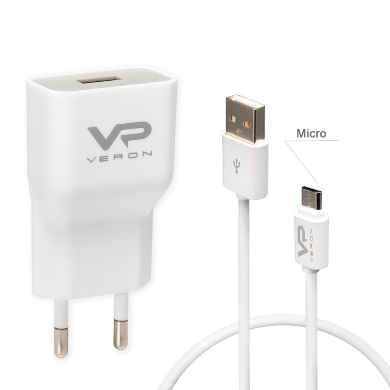 Мережева зарядка Veron AD-19M 2.0A QC2.0 з Micro-кабелем (1м) – безпечна зарядка для смартфонів та електроніки