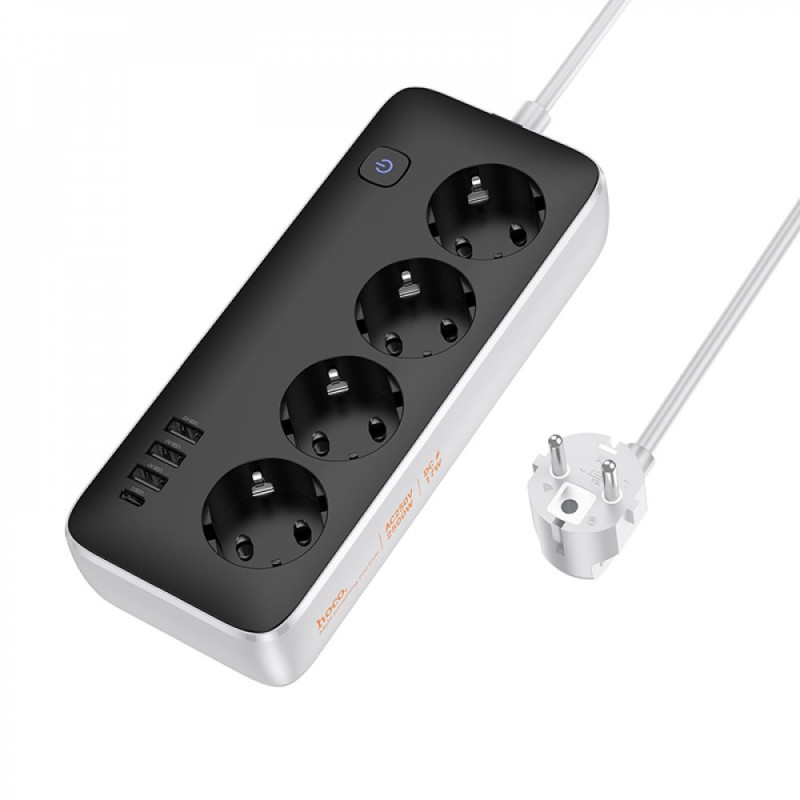 Мережевий фільтр Hoco AC21, 2500W, 4 USB-порти, чорний