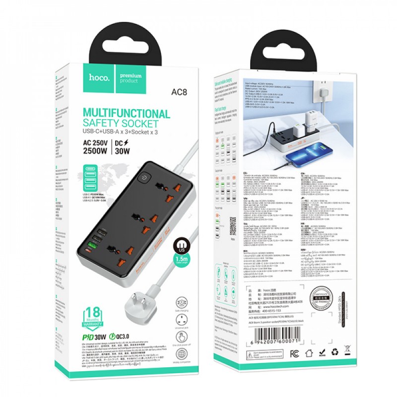 Мережевий фільтр Hoco AC8A ідеально підходить для використання в домашніх умовах, офісах, а також у невеликих підприємствах, де потрібен захист від перепадів напруги і зручність підключення кількох пристроїв одночасно.