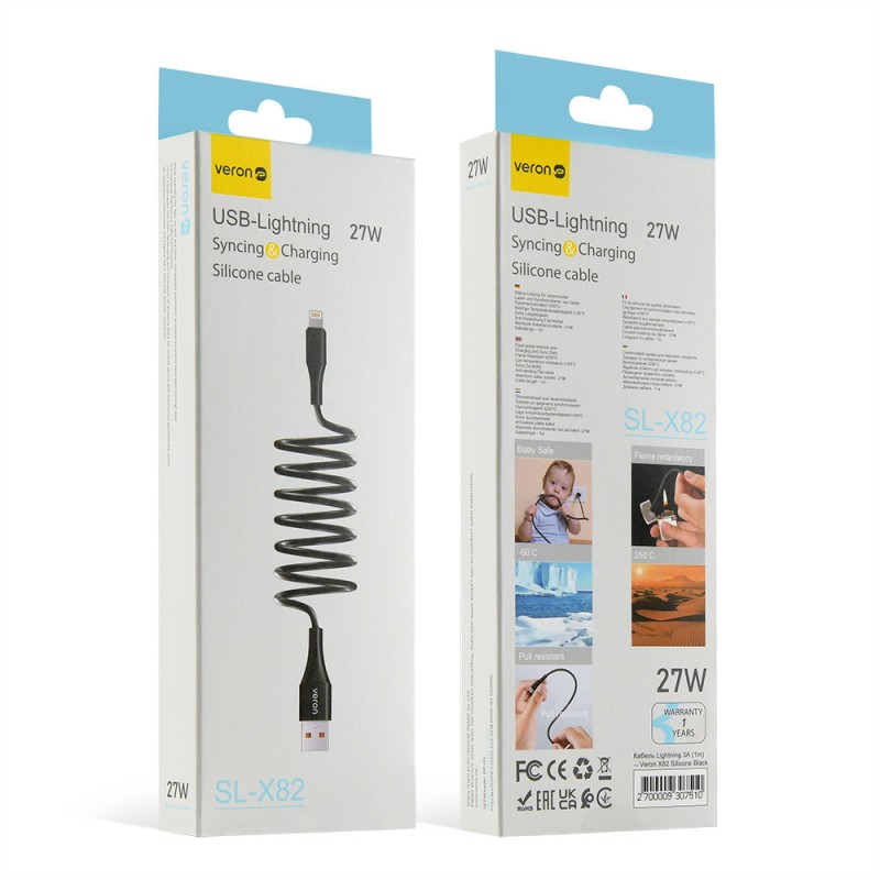 Кабель Veron SL-X82 ідеально підходить для використання вдома, в офісі або в дорозі. Ви можете заряджати ваше мобільне пристрій від комп'ютера або зарядного пристрою, а також синхронізувати дані з ПК. Довжина кабелю в 1 метр дозволяє зручно користуватися пристроєм під час зарядки — читайте, дивіться відео або грайте без обмежень.