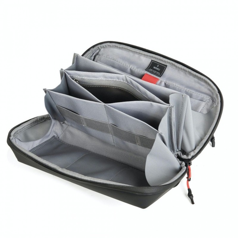 Ця сумка вирішує проблему заплутаних проводів та забутих зарядних пристроїв, надаючи можливість акуратно зберігати всі необхідні технологічні приладдя в одному місці. Водовідштовхувальна тканина захищає вміст від випадкових бризок і дощу.