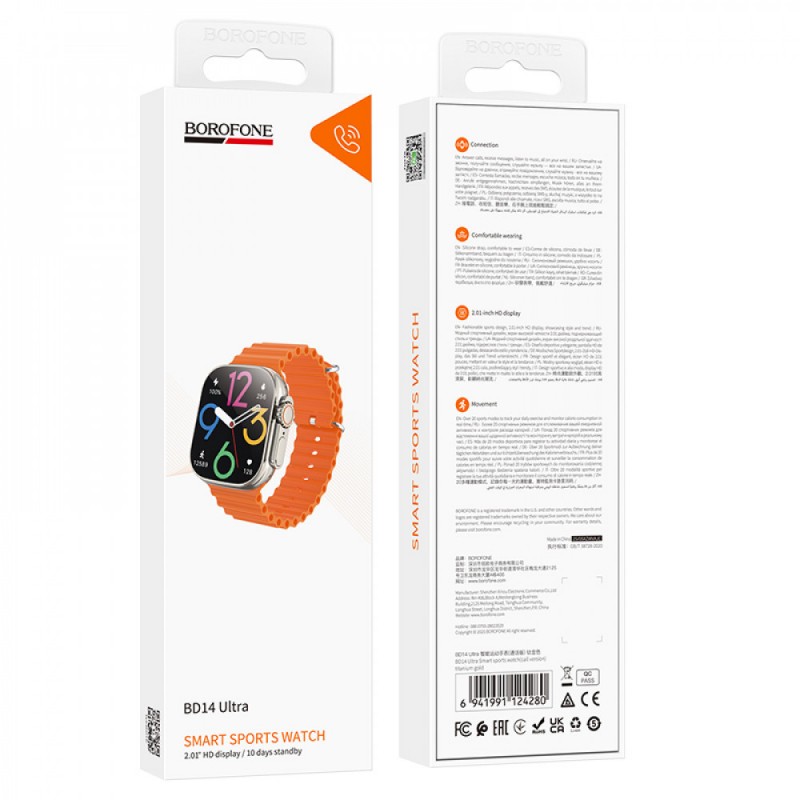 Цей стильний срібний розумний годинник Borofone BD14 пропонує всі сучасні функції, необхідні для активного способу життя. Він оснащений TFT-екраном і підтримує дзвінки через Bluetooth 5.3, а також має багато інших корисних функцій.