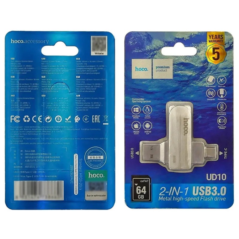 USB C флешка Hoco UD10 на 64 ГБ поєднує в собі високу швидкість передачі даних і компактний розмір. Вона ідеально підходить для зберігання та передачі інформації між різними пристроями, включаючи смартфони, ноутбуки та планшети, які підтримують USB Type-C. З міцним корпусом і сучасним дизайном, цей накопичувач стане надійним супутником у вашому цифровому житті.