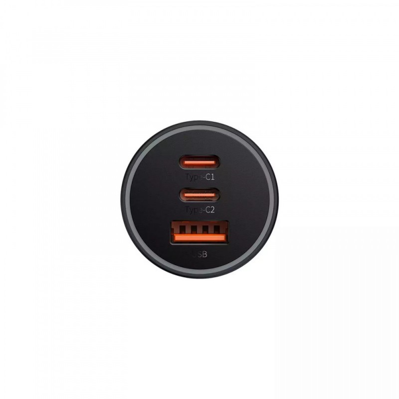 Зарядний пристрій для авто 65W 1U 2C Baseus Golden Contactor Pro Triple Fast Charger CGJP010013 Темно-сірий