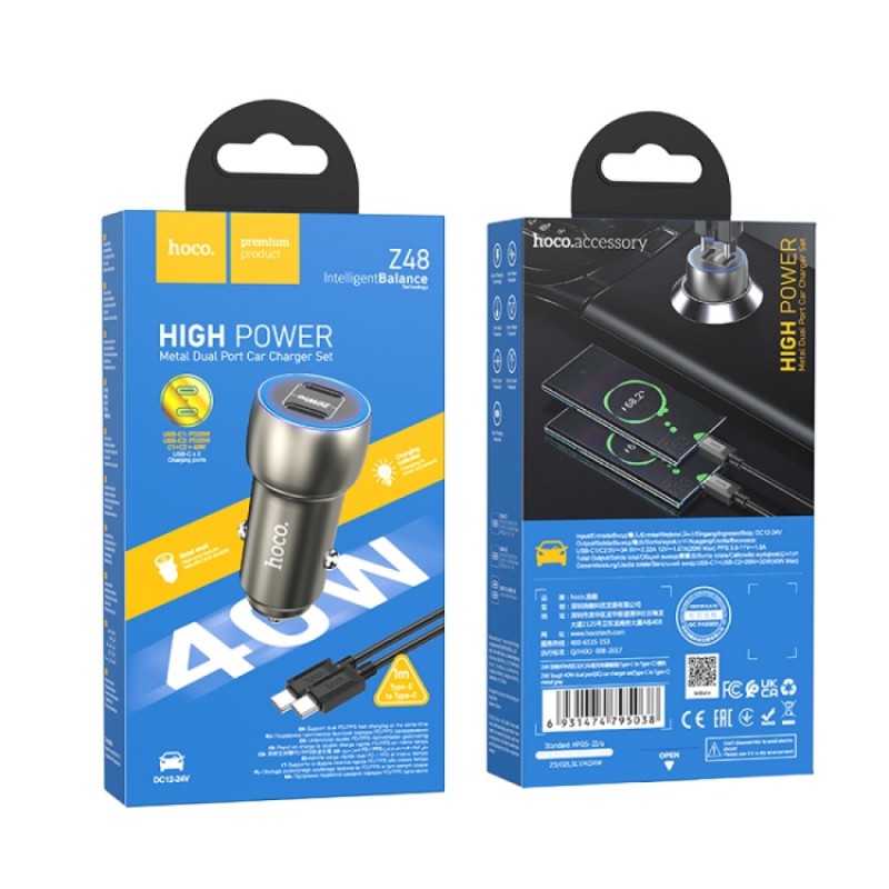 Зарядний пристрій для автомобіля 20W Hoco Z48 з 2 портами PD та кабелем Type-C