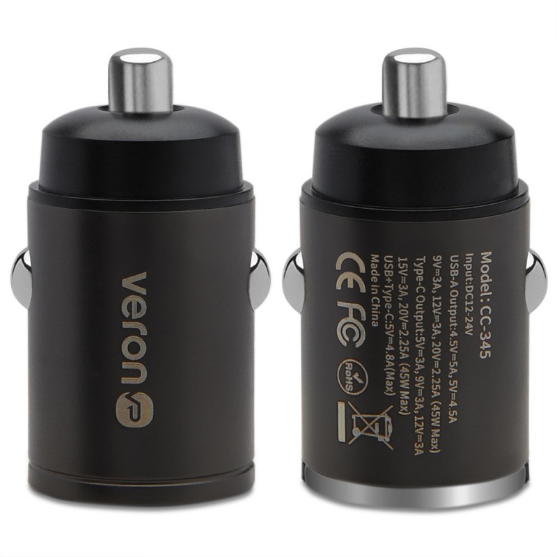 Відкрийте для себе потужний та надійний зарядний пристрій для автомобіля Veron з максимальною потужністю 45W. Цей пристрій ідеально підходить для сучасних автомобілів, забезпечуючи швидку та безпечну зарядку ваших пристроїв у дорозі.