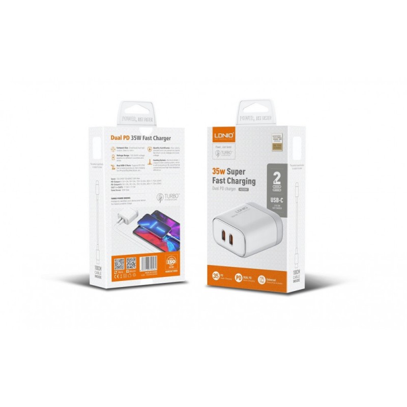 Зарядний пристрій Ldnio A2528C 35W з 2-ма USB-C портами