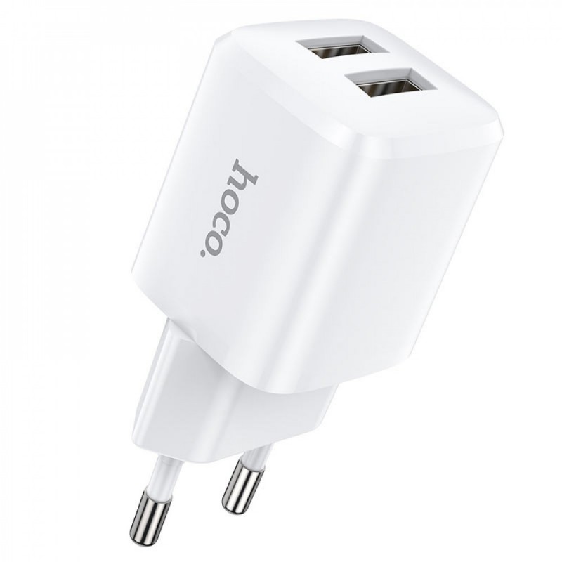 Зарядний пристрій Hoco N8 2.4A з 2 USB портами та Micro USB кабелем (1м) — Швидка та безпечна зарядка для телефонів та планшетів, білий
